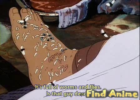 Легендарные плавящиеся лица с психоделическим колоритом и забавной анимации. В целом, с японской точки зрения, "Могила светлячков" на первом месте в аниме о Второй мировой войне, Гена чутка уступает, но это также довольно близко.