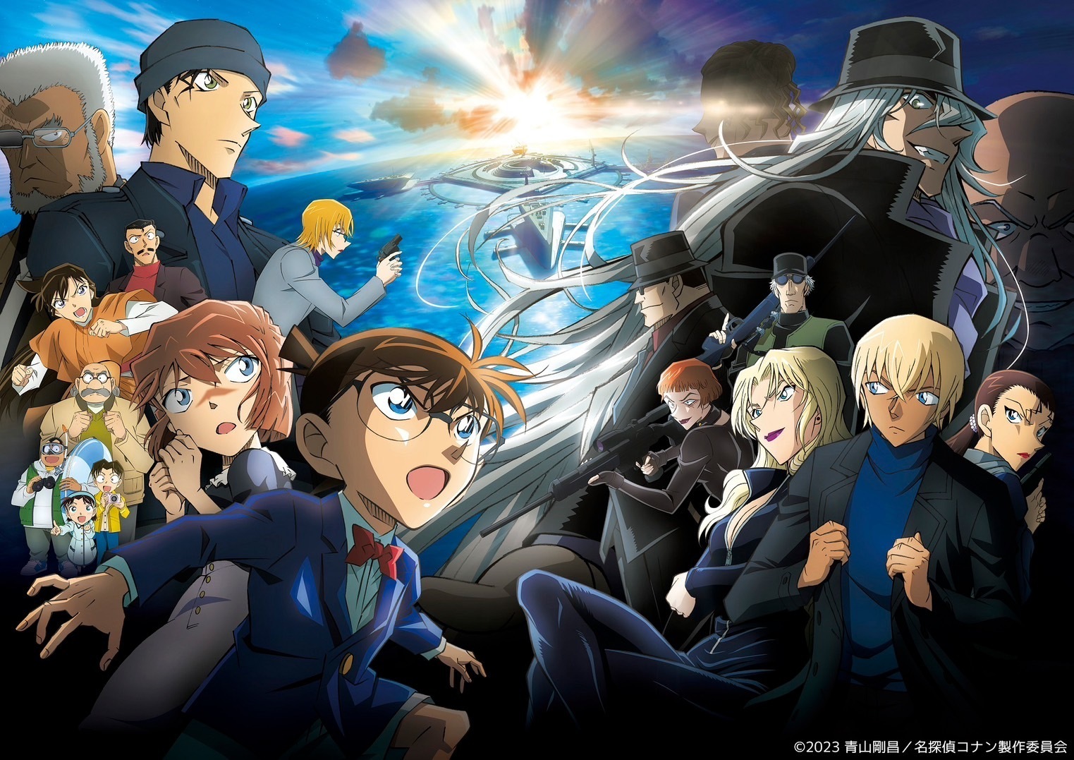 На этот раз место действия — территориальные воды острова Хатидзё, Токио. Инженеры со всего мира собрались для полномасштабного запуска «Pacific Buoy», морского объекта, соединяющего камеры слежения полиции всего мира. Там тестировалась некая «новая технология», применявшая систему распознавания лиц. Тем временем Конану, который посещает Хатидзё с Юными Сыщиками по приглашению Соноко для наблюдения за китами, звонит Окия Субару и сообщает, что сотрудник Европола был убит в Германии Джином, членом Черной Организации. Обеспокоенный, Конан пробирается в полицейский корабль, на котором находятся Курода Хёэ и полицейские, которые направляются для охраны объекта. Идет подготовка к полной активации всей системы, но Черная Организация похищает женщину-инженера! В их руки попадает имевшаяся у нее флешка с особой информацией...