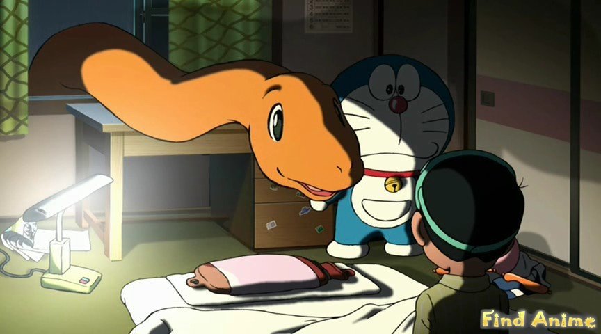 Нобита находит окаменелое яйцо динозавра. С помощью Дораэмона, его удается оживить, и из проклюнувшегося яйца вылупляется динозавр! Нобита заботится о нем, но он понимает, что доисторический ящер не сможет жить с ними всегда, и поэтому решает вернуть его в прошлое. А тем временем охотники из будущего истребляют динозавров. Чтобы спасти животных от кровожадных охотников, Дораэмон и его товарищи организуют экспедицию в древние времена.