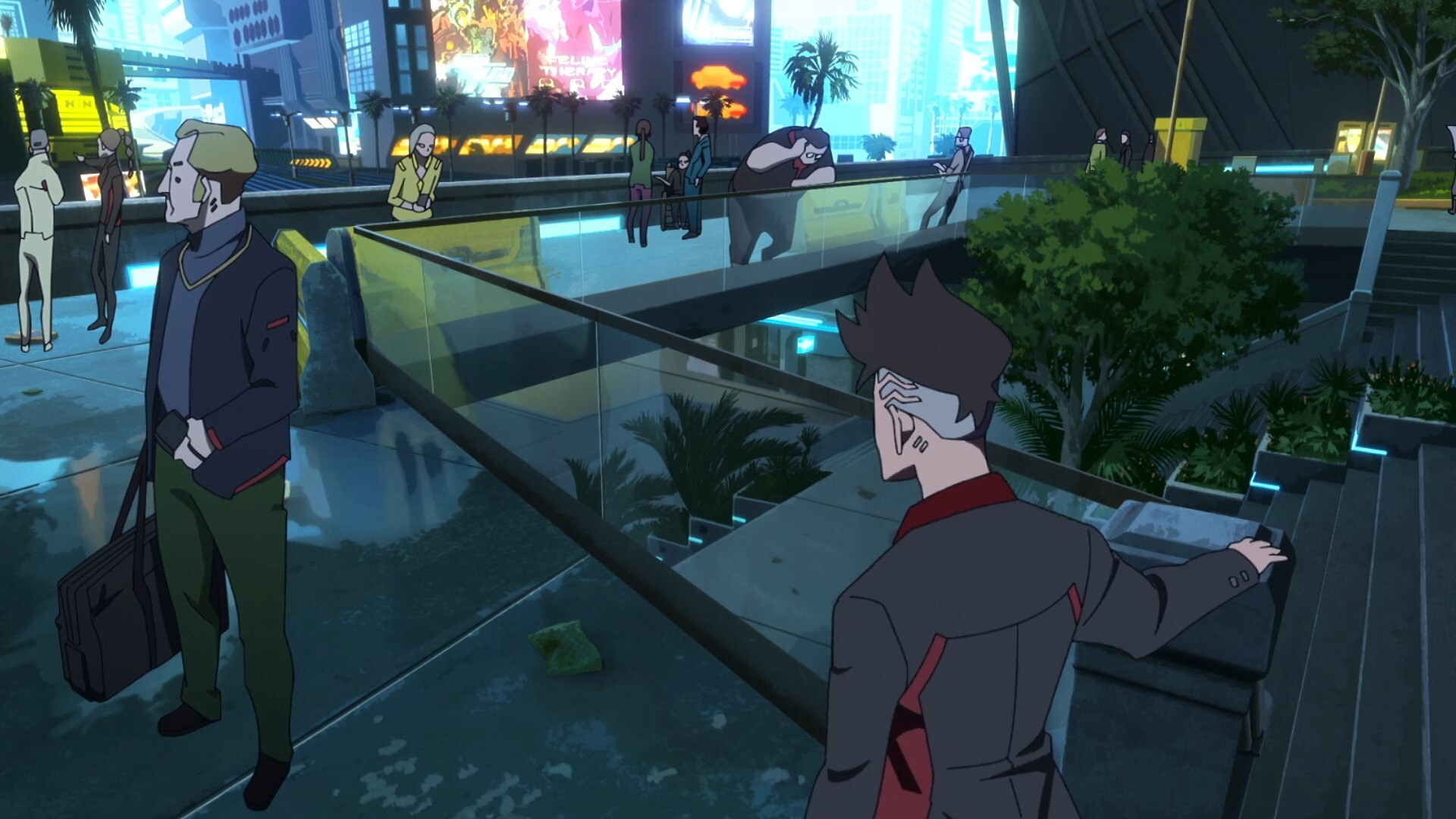 В сериале рассказывается новая, не связанная с оригинальной компьютерной игрой CYBERPUNK 2077 история, но фигурируют некоторые локации и персонажи, которых можно было увидеть в игре.