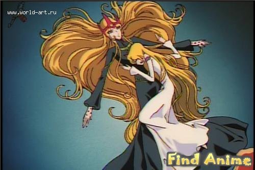 С одной стороны, данный видеофильм о двух сериях позиционируется как своего рода продолжение «Королевы Тысячелетия», в статье о которой я упоминал, что во времена оны ходил слух, будто бы Яёй Юкино (главгероиня «Миллении») - это Мэйтель в юности. Времена те давно миновали, и теперь создатели «Легенды Мэйтель» на полном серьёзе утверждают, что в действительности Яёй - это Андромеда Промесиум, мать Мэйтель и её главный противник в классических версиях «Галактического экспресса». Рассчёт, видимо, делался на то, что ни один современный зритель «Королеву тысячелетия» всё равно не видел и никогда не увидит, т.к. сюжеты как сериала, так и полнометражного фильма ни в коем случае не позволяют отождествить Яёй с Промесиум. Её, конечно, пару раз называют этим именем, но это ровным счётом ничего не значит. Вы же не считаете, что Харлок из Gun Frontier и Харлок из Endless Orbit SSX - это один и тот же персонаж?
