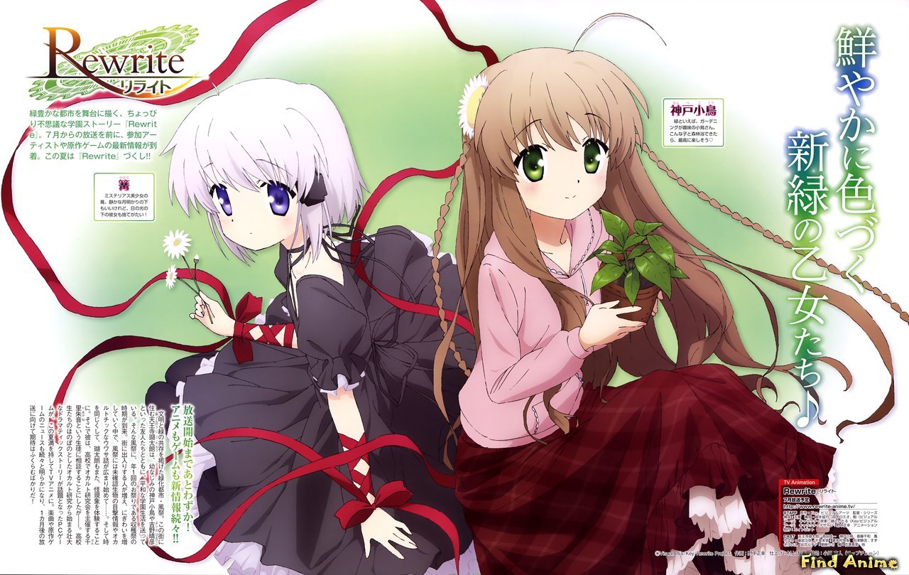 Кадзамацури является полем тайной борьбы между двумя группами: Gaia и Guardian. Организация Gaia, находящаяся под покровительством группы Martel, состоит из нигилистов и мизантропов, способных контактировать с демонами, которые пробуждаются благодаря жизненной силе призывателя. Martel когда-то был церковью и состоит из священнослужительниц с врождённой инвалидностью. Группа Guardian посвятила себя уничтожению демонов и практически полностью состоит из людей, обладающих сверхспособностями. Обе группы прибывают в Кадзамацури, чтобы найти демона по имени Кагари, который выглядит как ученица средней школы. Кагари, главная героиня истории, обладает силой, способной разрушить всю жизнь на Земле, хотя она также может инициировать начало повторной эволюции, которая заново начнёт процесс развития разумной жизни. Однако это произойдёт только при использовании энергии Земли, а во время событий Rewrite запас этой энергии истощается. Gaia хочет захватить Кагари, чтобы ускорить уничтожение человечества, а Guardian ищет Кагари, чтобы убить её, тем самым не допустив гибели человеческих жизней.