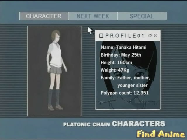 В ближайшем будущем технология начала стремительно развиваться, и такие вещи как видеофоны и постоянный беспроводный доступ в Интернет стали доступны для каждого. Однако правительство было настолько небрежно, что квалифицированный хакер смог залезть в национальный информационный архив. Используя данные из архива, он создает вебсайт Платонический Цепи для людей, которые бы могли узнавать информацию о себе и своих друзьях. По совпадению, три молодых девочки, Хитоми, Rika, и Kanae получают доступ к Платоническим цепям.
