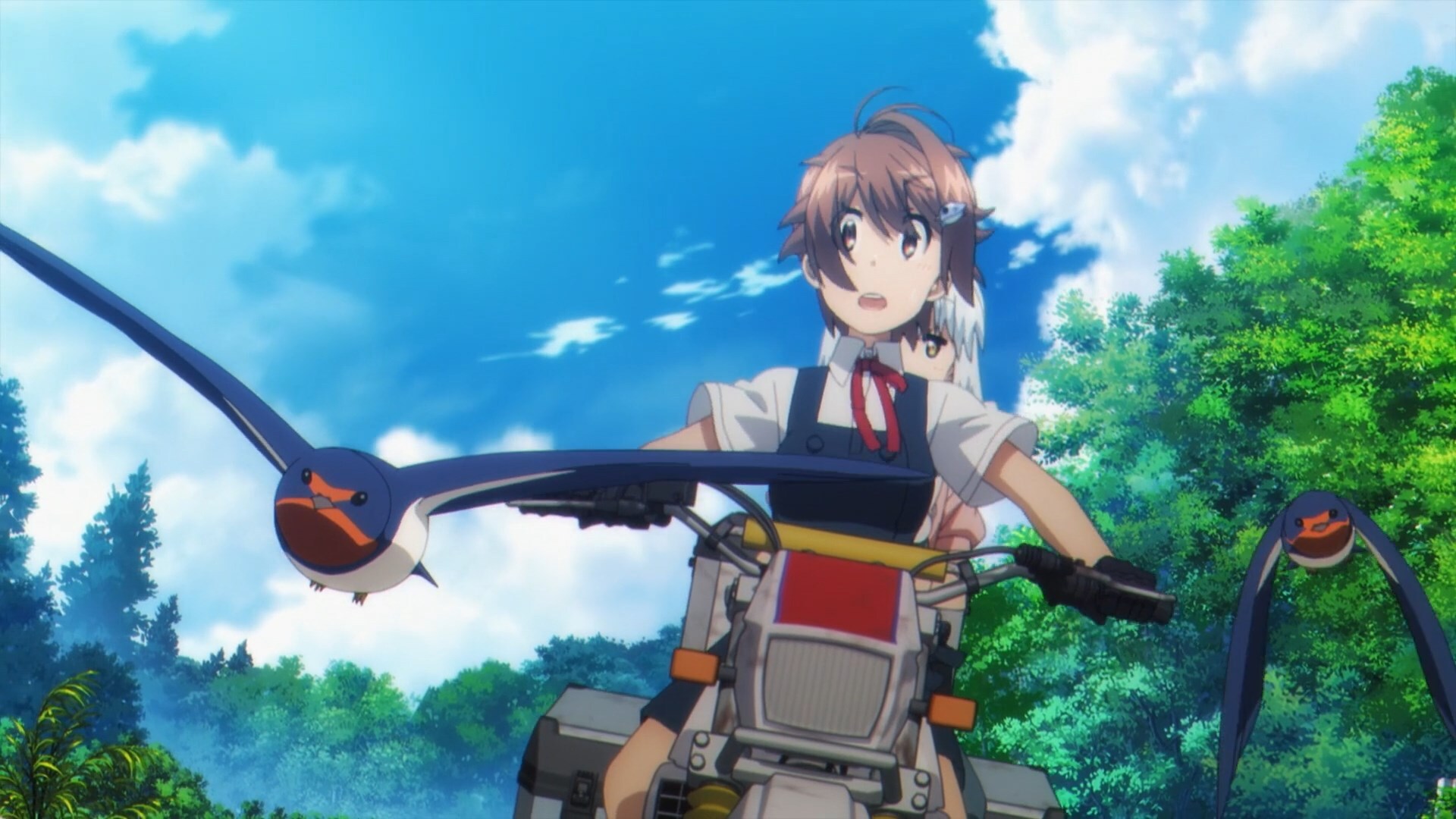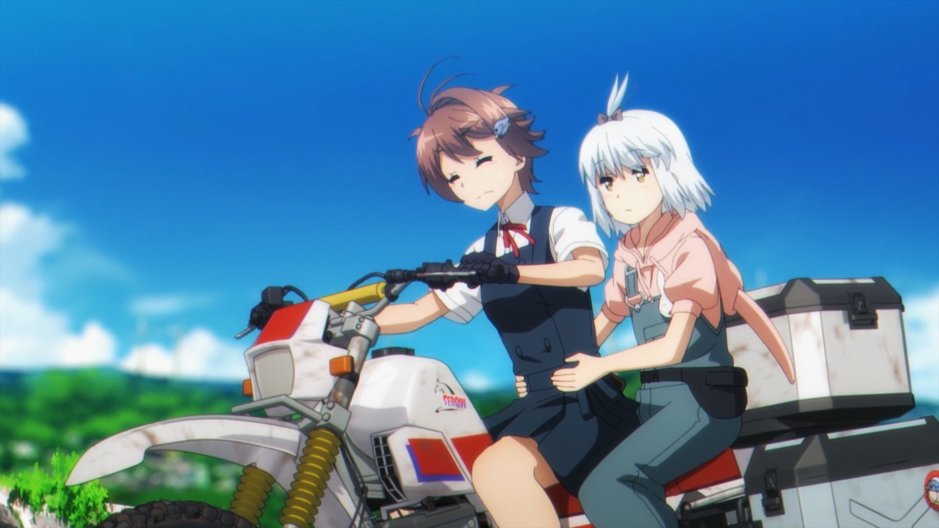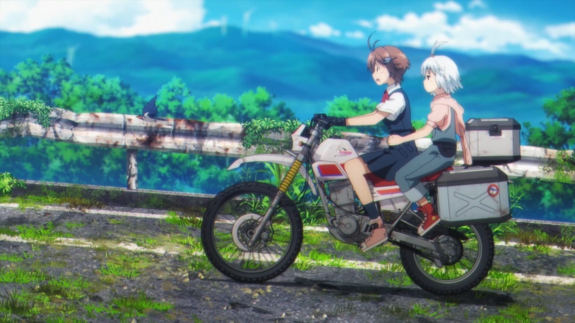 Оставшись в полном одиночестве после конца света, две девушки едут на мотоциклах по пустым руинам Японии — и они не собираются позволять краху цивилизации помешать им осматривать достопримечательности! Даже когда мир заканчивается, их путешествие продолжается.