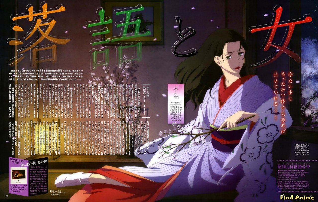 Начав таким образом новую жизнь, Ётаро встречает важных для своего учителя людей, включая его подопечную Конацу. Конацу была дочерью знаменитого рассказчика ракуго, и Якумо приютил девушку после трагической смерти ее отца. Конацу любила искусство своего отца и хочет пойти по его стопам, но этот путь закрыт для женщин.