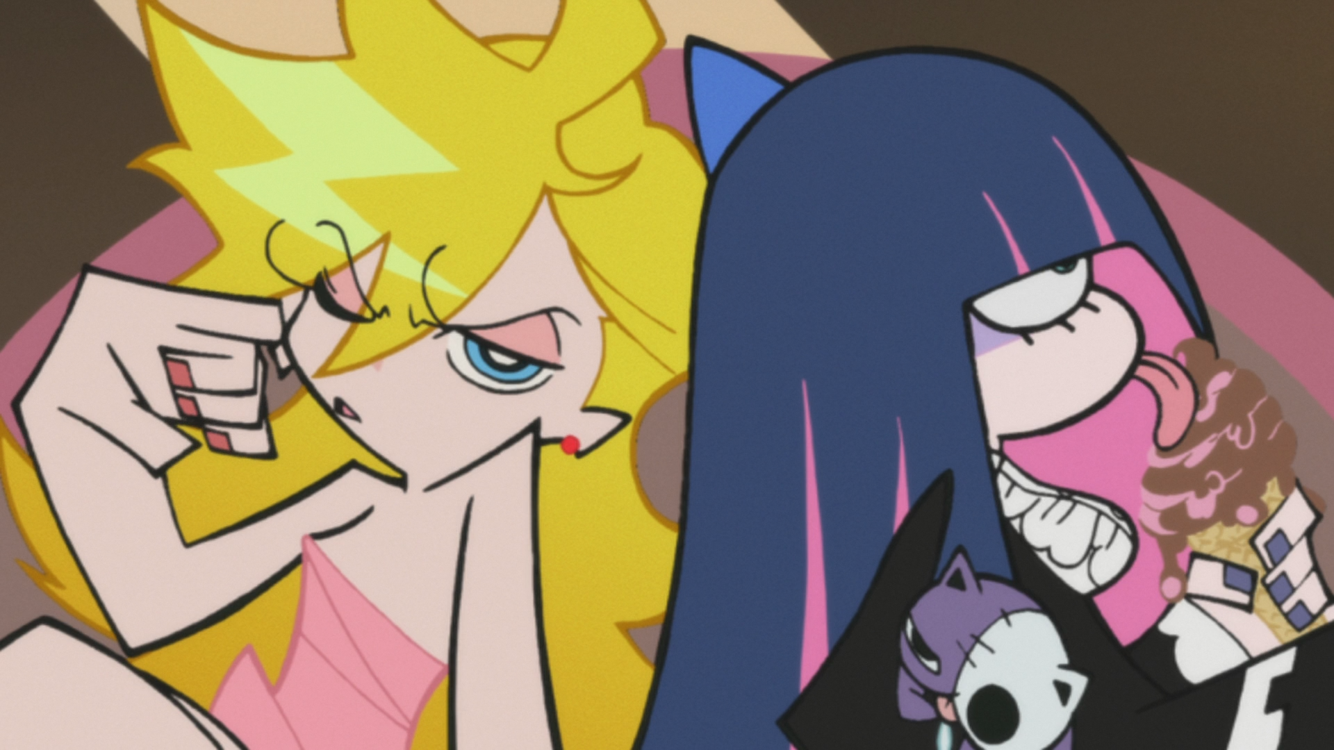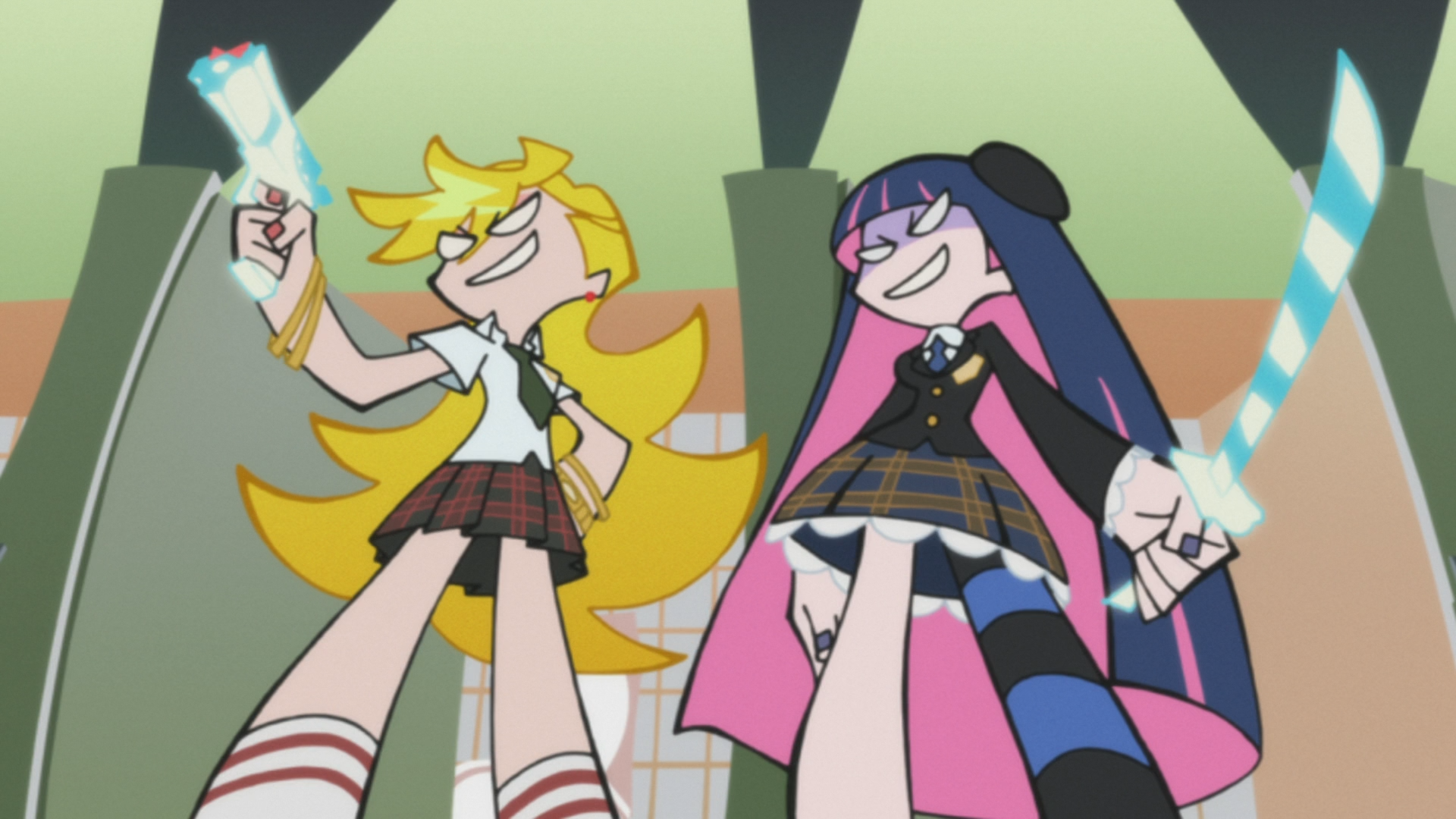 Так что теперь Панти и Стокинг прочно встали на путь исправления и сотрудничества с администрацией в лице их куратора Гартербельта (он же святой отец Поясок). Превращая трусики в пистолеты, чулки – в катаны, а милую зверушку Чака – вообще черт знает во что, героини грудью встали на защиту Датэн-сити и комедийно-абсурдистского жанра!