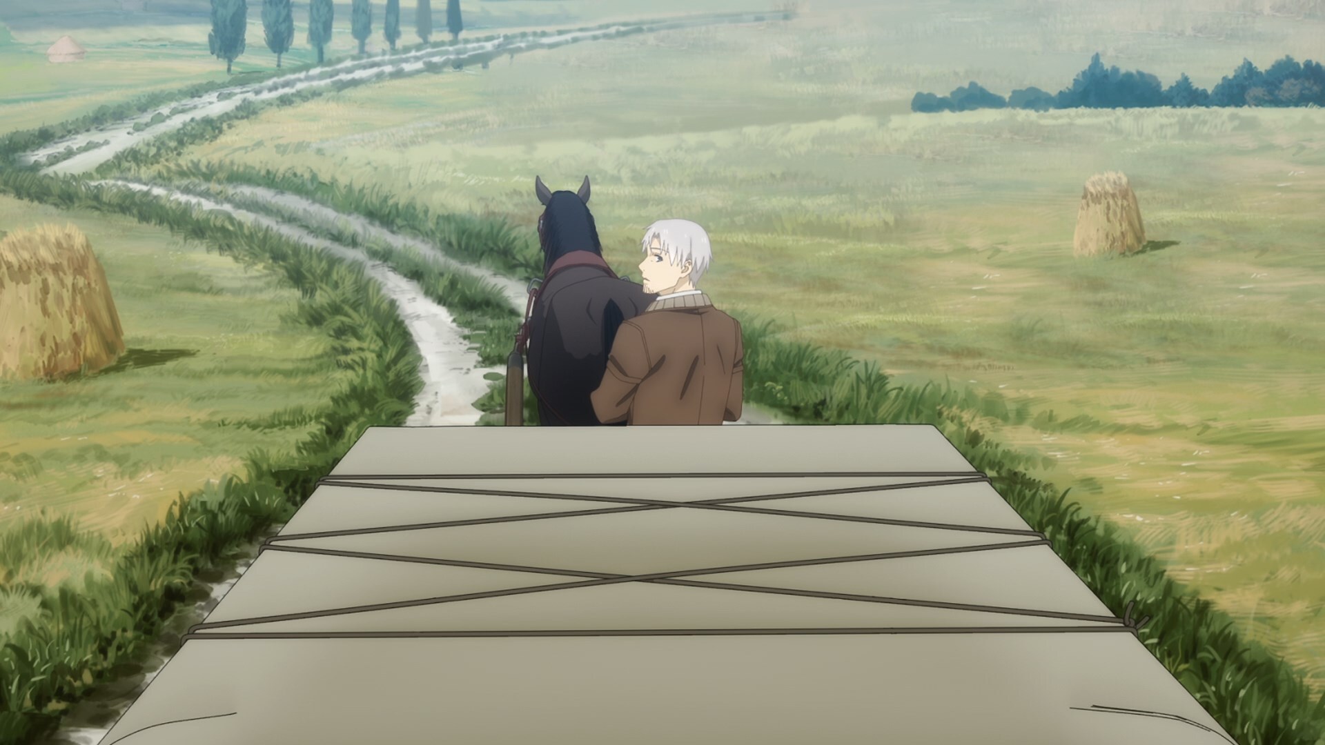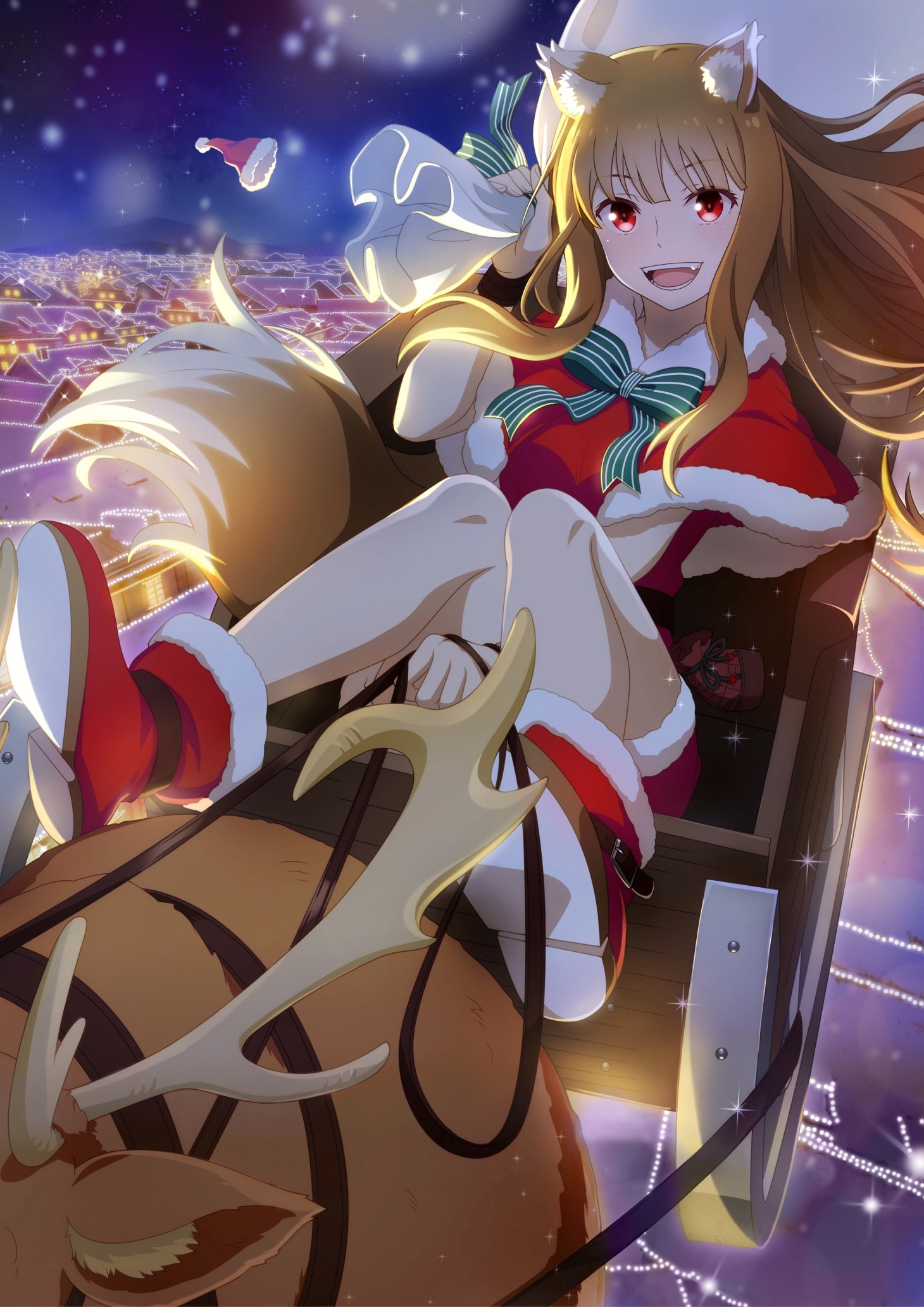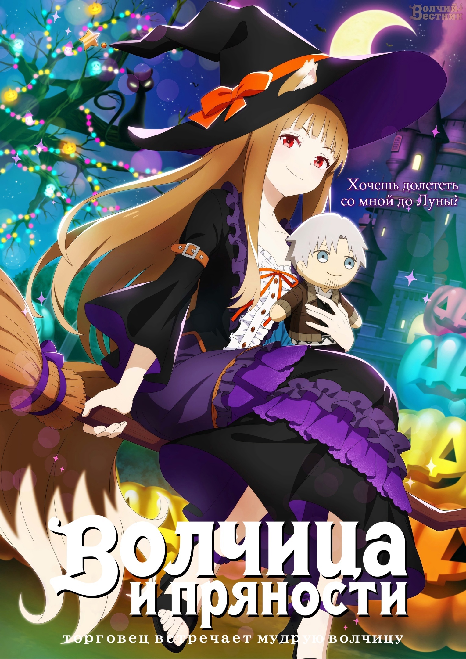 Во времена, когда леса были густы и полны дичи, а поля золотились пшеницей, по миру странствовал торговец Крафт Лоуренс. Проезжая как-то через деревушку Пасроэ в разгар праздника урожая, он обнаружил у себя в повозке необычную девушку. На голове — острые ушки, за спиной — пушистый хвост, а имя ей, по её же словам, — Волчица Холо Мудрая! Та самая богиня Холо Мудрая, некогда пообещавшая оберегать поля пшеницы, в честь которой в деревне каждый год проводят праздник! Вот только деревне Холо больше не нужна, так что она предлагает Лоуренсу сделку: торговец сопроводит её на родину, в холодные леса Ёица, а богиня во время странствий поможет ему скопить денег на собственную лавку.